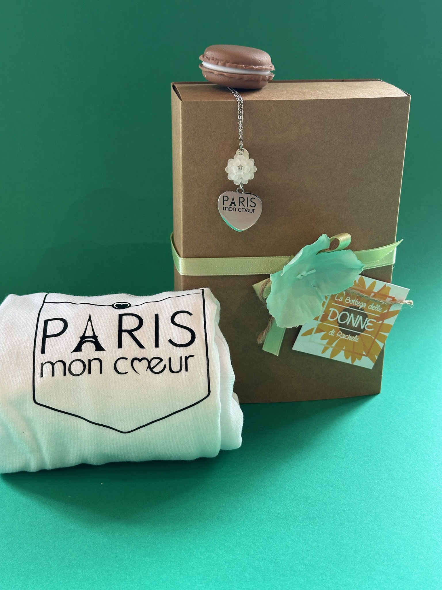 Collana lunga in acciaio con cuore incisione esclusiva Paris Mon coeur e Boule realizzata a mano con cristalli latte