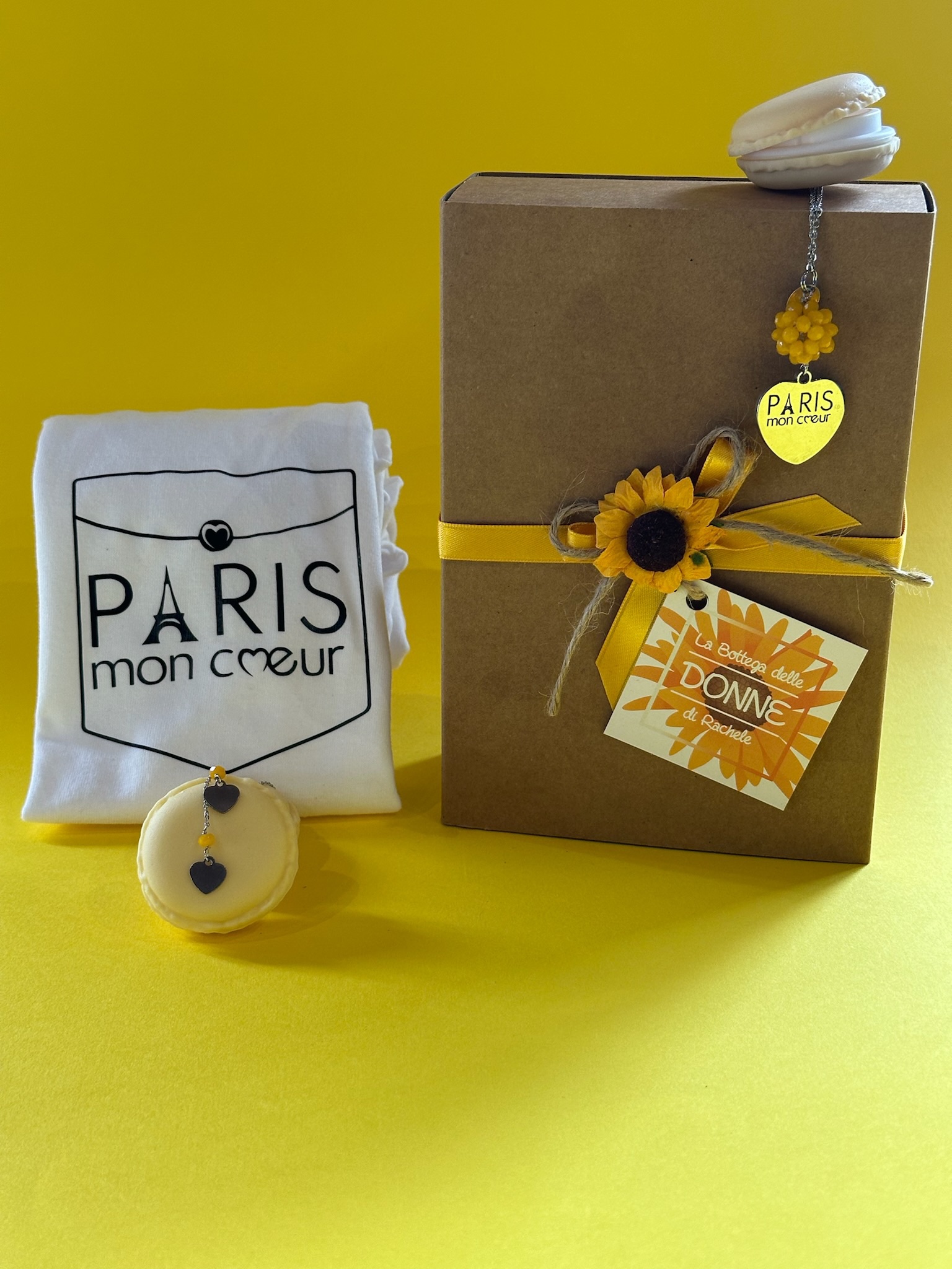 Collana lunga realizzata a mano con catena in acciaio, boule in cristalli e cuore con incisione esclusiva “Paris non coeur “