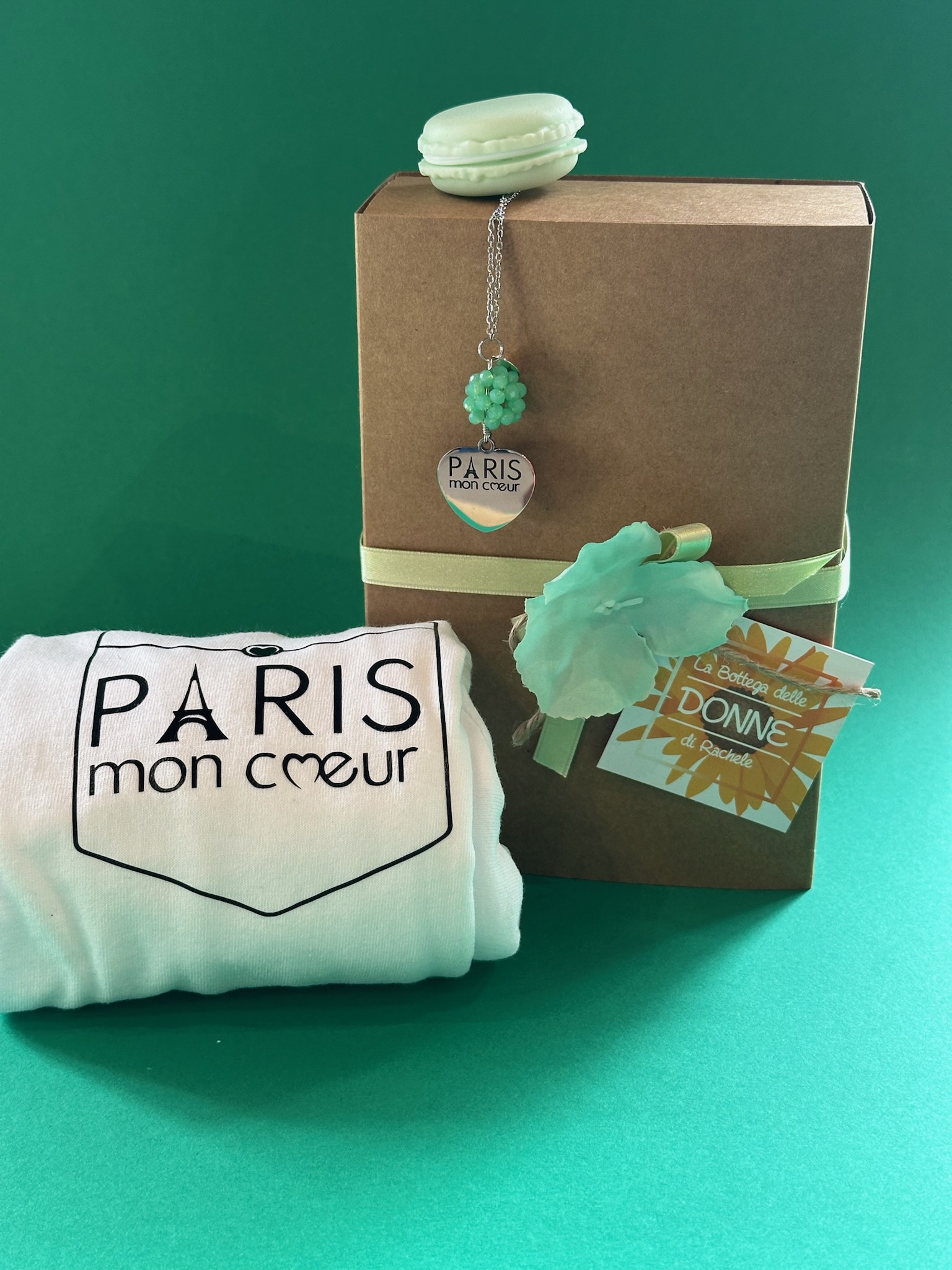 Collana lunga con catena in acciaio e cuore incisione esclusiva Paris non coeur e boule realizzata a mano con cristalli nel color #greenvelvetcake