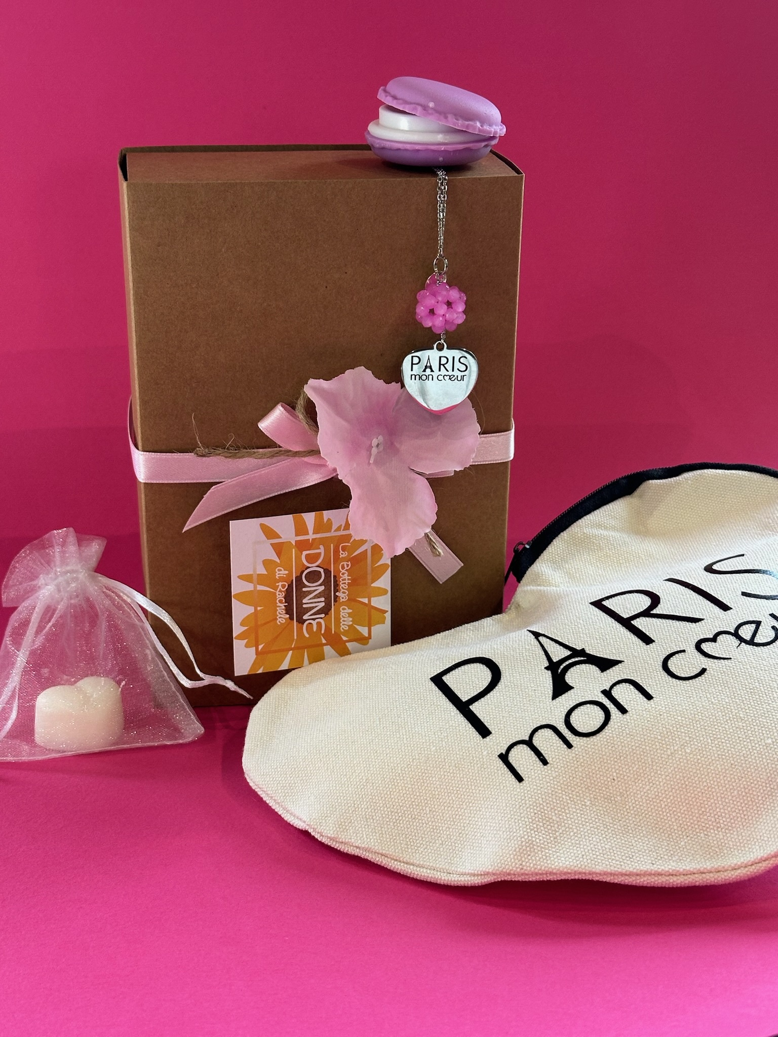 Collana lunga in acciaio con cuore incisione esclusiva Paris Mon coeur e Boule realizzata a mano con cristalli intense rose