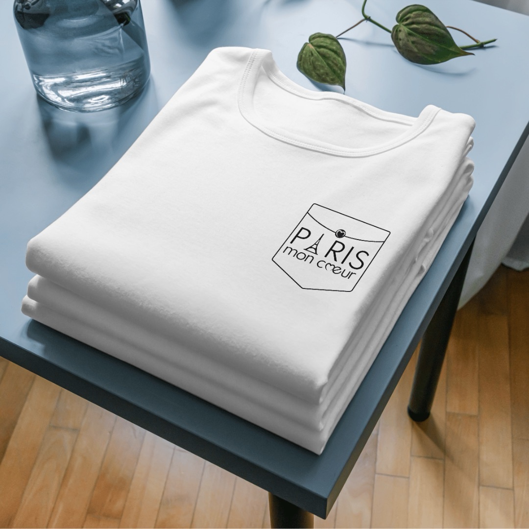 T-shirt in cotone 100% bianca con stampa esclusiva termovinilica “Paris Mon coeur ”